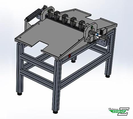 En el siguiente paso y una vez realizadas las mediciones necesarias, el mecanismo realiza una discriminación de los ejes estudiados diferenciándolos según su medida. Todos los ejes son desplazados en una dirección a una velocidad constante: los que pasen los filtros se trasladan hacia el lado OK, y los descartados se sitúan en el lado NOK.